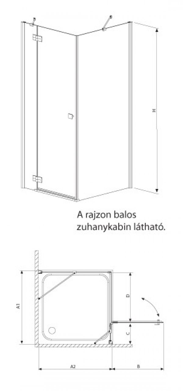 Radaway Almatea KDJ aszimmetrikus zuhanykabin adatai: